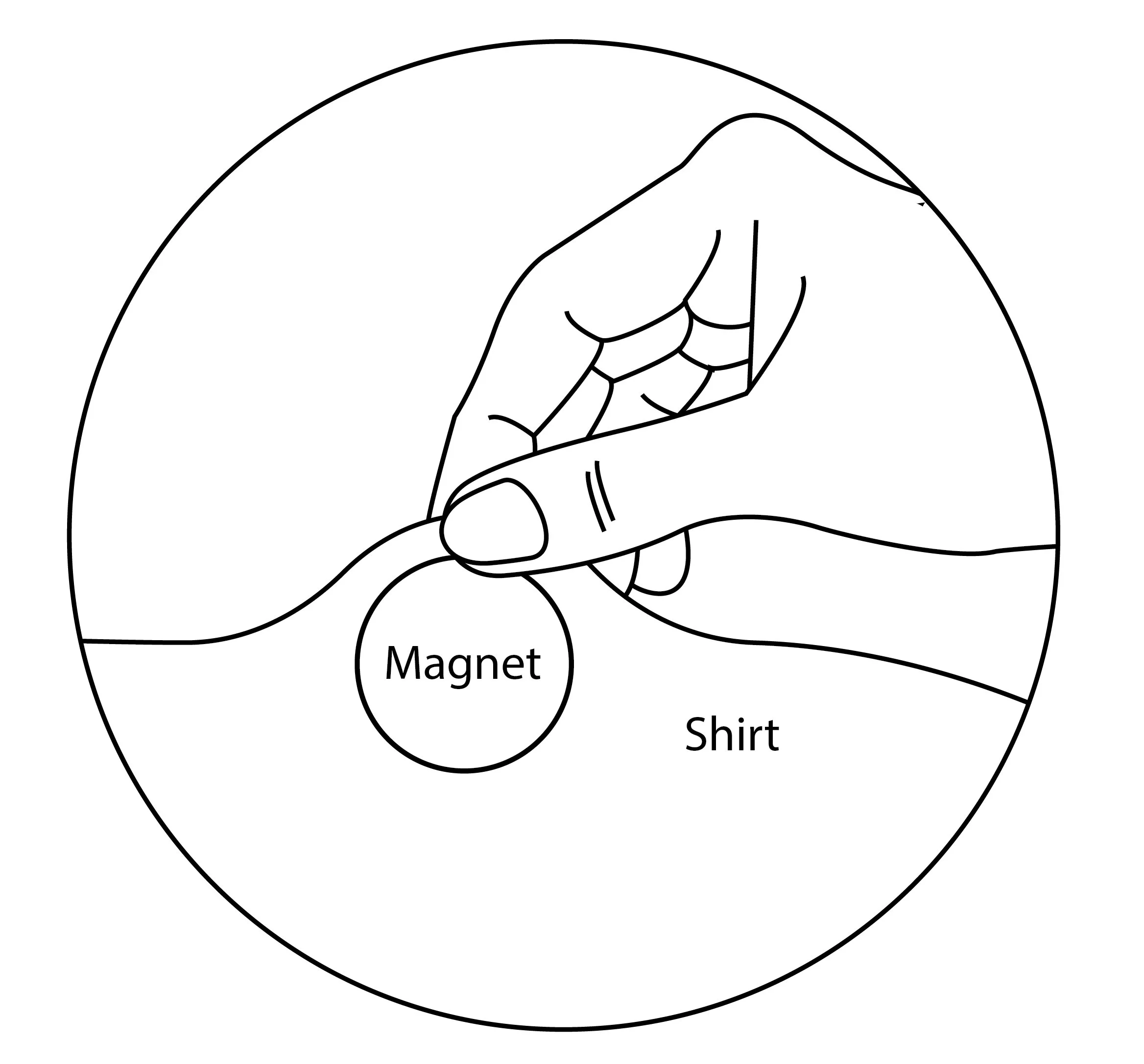 Pinch the fabric of your shirt on top of your shoulder, and place the bottom magnet against the piece of fabric you lift up